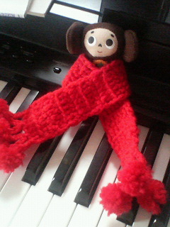 赤い手作りマフリャー。