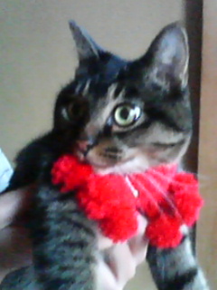にゃんぼこ博士にも三毛柄のマフラーあげたいです。