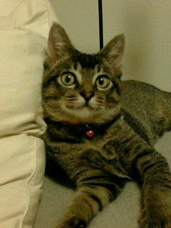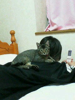 もうお馴染みになっている、甘えるときの手段。空腹時・お留守番後にこれを目にする率が高い。肩を狙って自ら飛びつく。