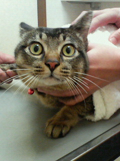 病院でお注射の直前のチェブ君です。ついにこの日が来たのです・・去勢手術ですよ!