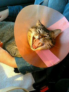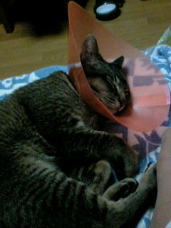本日は去勢手術後のチェブラッシュ。傷口を触らない様にエリザベスカラーをしています。