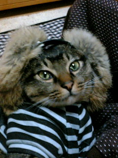 布マスクにチェブの顔をアイロンプリントしたもので、洗濯することによってヴィンテージな風合いになった。002が愛用中。