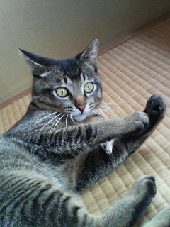 そんな日々がしばらく続いたものの、今となってはにゃ〜にゃ〜うるさいししつこい。食いしん坊万歳のイキで好物は多分バターロールなどバター味のパン。多分というのは食いしん坊なのでこの世の食料全てが好物なのではないかというくらいです。