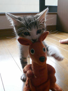 以前、お目見えした乗ってカンガルーをくわえてよちよち歩きの蔵之介。