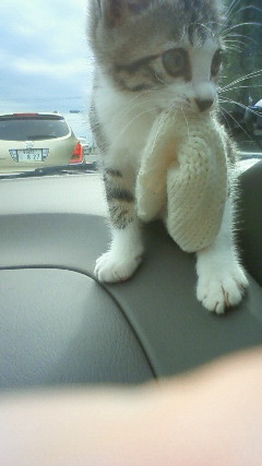 靴下は、自分の寝床にするためくわえてベッドに運びます。まるで、ダンボールの変わりに靴下を敷いて寝る、ホームレス蔵。