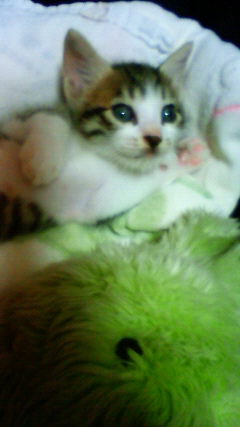 哺乳瓶をみると、みゃーみゃー泣き出す蔵之介。ミルクをズコーとものすごい吸引力で飲んだ後は、自分の寝床に入ります。