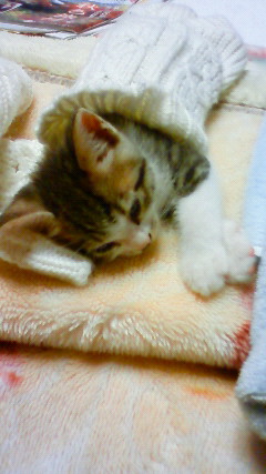 哺乳瓶が破壊され、ルームソックス(もちろん洗い済み)に入って寝る蔵之介。