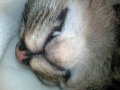 得意技:背伸び、毛繕い、指かじりとよちよち歩き、でんぐり返り。