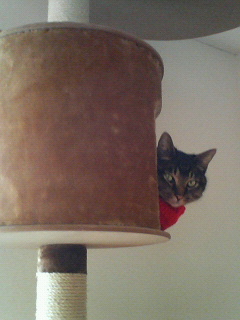 キャットタワーの中で、あるわけの無いチーズを探すチェブラシカ。